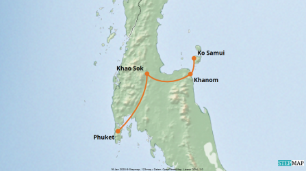 Üppig bewaldete Gebirgszüge, tosende Wasserfälle, geheimnisvolle Höhlen und das beliebte Urlaubsgebiet am Chiao-Lan-See erwarten Sie im Khao Sok Nationalpark in Südthailand. Überdies machen wilde Tiere, wie Tiger, Elefanten und Affen, und eine faszinierende Pflanzenwelt einen Trip, begleitet von farbenprächtigen Schmetterlingen, in den immergrünen thailändischen Dschungel zum atemberaubenden Abenteuer. Der einzigartige Höhepunkt ist eine spektakuläre Übernachtung im komfortablen Baumhaus, untermalt von den vielfältigen Geräuschen des Dschungels.