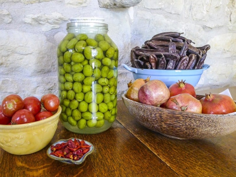 In den Restaurants und Tavernen werden im Allgemeinen einfache Gerichte serviert. Es gibt kaum Soßen, dafür wird großzügig einheimisches Olivenöl verwendet. Viele Gerichte werden auf dem Holzkohlegrill zubereitet. Speisen wie Dolmades (gefüllte Weinblätter), Moussaka, Souflaki und Avgolemono (Suppe) sind überall erhältlich. Zu den Spezialitäten gehören auch Taramosalata (rosa Fischrogenpaste mit Zitronensaft), Kalamari (Tintenfisch), Tzatziki (Joghurt, Olivenöl, Zitronensaft, Knoblauch, Gurke und Dill) und Fischgerichte aller Art. Salate sind oft mit Feta (Schafs- und Ziegenkäse) und Olivenöl zubereitet. Oliven sind preiswert und überall erhältlich. Im Sommer gibt es viel frisches Obst, vor allem Wassermelonen, im Spätsommer auch köstliche Feigen und Kaktusfrüchte. Einige Restaurants bieten auch internationale Gerichte an. Restaurants sind oft zwischen 12.00 und 15.00 Uhr zum Mittagessen und 21.00-24.00 Uhr zum Abendessen geöffnet.