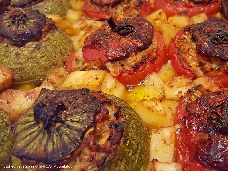In den Restaurants und Tavernen werden im Allgemeinen einfache Gerichte serviert. Es gibt kaum Soßen, dafür wird großzügig einheimisches Olivenöl verwendet. Viele Gerichte werden auf dem Holzkohlegrill zubereitet. Speisen wie Dolmades (gefüllte Weinblätter), Moussaka, Souflaki und Avgolemono (Suppe) sind überall erhältlich. Zu den Spezialitäten gehören auch Taramosalata (rosa Fischrogenpaste mit Zitronensaft), Kalamari (Tintenfisch), Tzatziki (Joghurt, Olivenöl, Zitronensaft, Knoblauch, Gurke und Dill) und Fischgerichte aller Art. Salate sind oft mit Feta (Schafs- und Ziegenkäse) und Olivenöl zubereitet. Oliven sind preiswert und überall erhältlich. Im Sommer gibt es viel frisches Obst, vor allem Wassermelonen, im Spätsommer auch köstliche Feigen und Kaktusfrüchte. Einige Restaurants bieten auch internationale Gerichte an. Restaurants sind oft zwischen 12.00 und 15.00 Uhr zum Mittagessen und 21.00-24.00 Uhr zum Abendessen geöffnet.