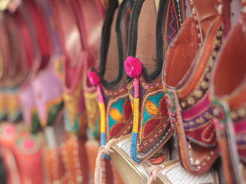 ist sehr preiswert und wird in vielen Geschäften auf Wunsch innerhalb kurzer Zeit nach Maß angefertigt oder geändert. Kleider gibt es aus Seide, Himroo, Baumwolle, Brokat, Chiffon und Chinons. Kleidung aus Rajasthan ist bunt und mit unzähligen kleinen Spiegeln besetzt; auch Taschen, Mützen und Geldgürtel in diesem Stil sind zu finden.