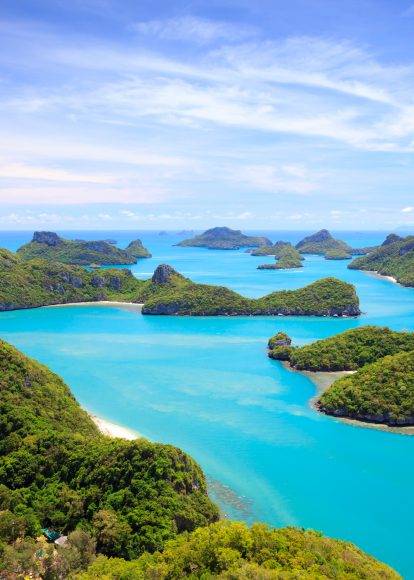 Weiße feinsandige Strände, ein türkisfarbenes klares Meer, eine satte grüne Tropenvegetation als Hintergrundkulisse und ein azurblauer Himmel – diese kontrastreiche Szenerie können Sie während eines Inselhoppings in Thailand genießen. Die Inseln bieten von kleinen, individuellen Unterkünfte bis hin zu luxuriösen Wellnessresorts alles, was Sie sich für Ihren wohlverdienten Urlaub erträumen.