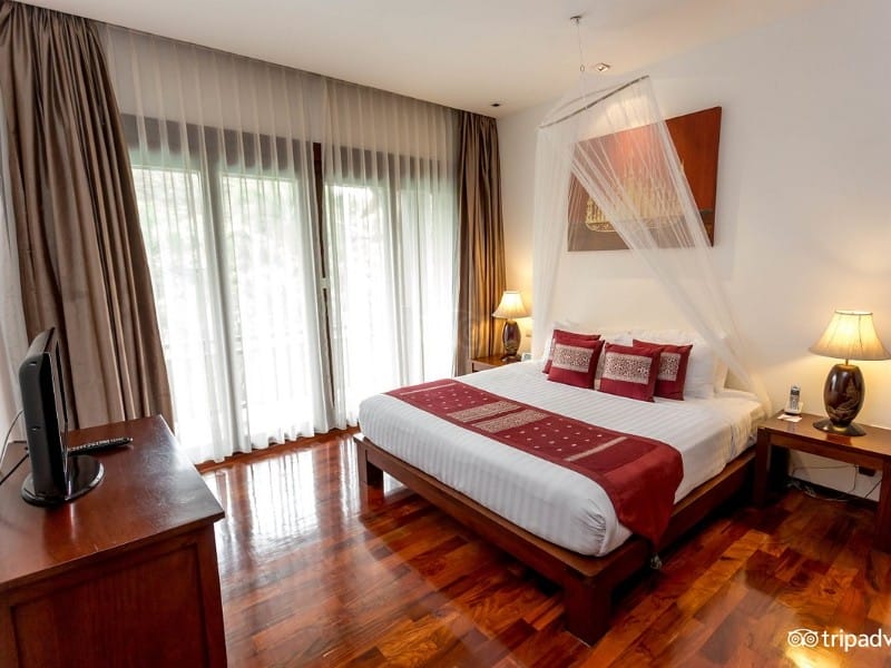Beispielzimmer im Sala Prabang Hotel Beispielbadezimmer im Sala Prabang HotelFrühstückslokal im Sala Prabang Hotel Ausblick vom Santi Resort Pool im Santi Resort Beispielzimmer des Santi ResortsVogelperspektive des Satri House HotelsBeispielzimmer im Satri House Hotel Der Garten des Satri House Hotel Die Poolanlage des Satri House Hotels