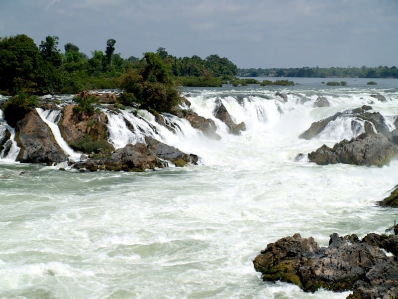 Nach einem frühen Frühstück fahren Sie auf der Straße und mit dem Boot in Richtung Süden nach Done Khon. Hier begeben Sie sich zunächst auf die Spuren der französischen Kolonialvergangenheit in Ban Khone, wo noch einige alte Kolonialhäuser stehen und Sie die erste laotische Eisenbahn mit eigener Lokomotive bestaunen können. Danach setzen Sie die Erkundung des Gebiets der 4000 Inseln mit dem Boot fort und besuchen den wunderschönen Liphi-Wasserfall, auch bekannt als Samphamith, der eine natürliche Grenze zwischen Laos und Kambodscha bildet. Nach Rückkehr nach Ban Nakasang fahren Sie zu den berühmten Mekongfällen von Khone Phapeng - die größten Wasserfälle Südostasiens, auch als "Niagara des Ostens" bekannt, die direkt an der Grenze zu Kambodscha liegen. Sie erstrecken sich über 10 km und sind somit der größte Wasserfall in Südostasien. An der höchsten Stelle stürzt das Wasser 21 m in die Tiefe.