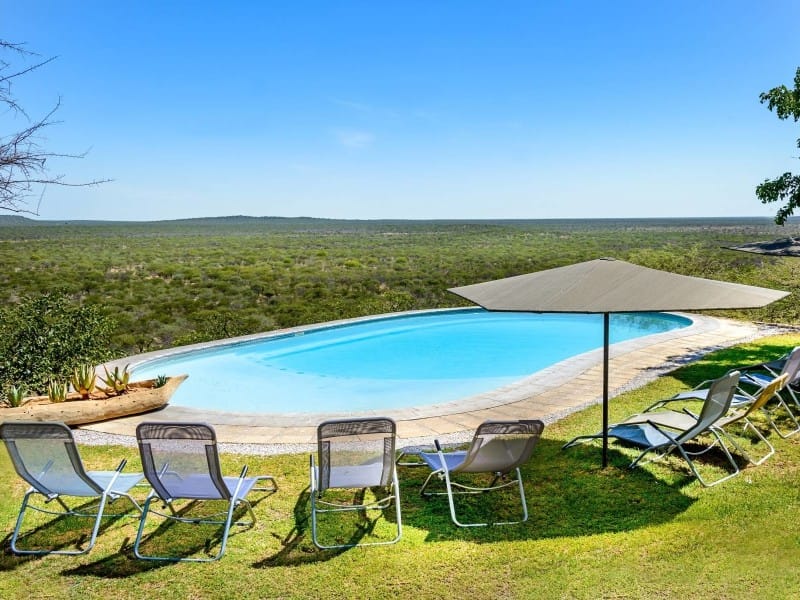 Nur 10 km vom Anderson Tor, einem Eingang des Etosha Nationalparks, entfernt liegt die Etosha Safari Lodge. Die Zimmer der Lodge bieten nicht nur eine kleine Veranda, Kaffee und Tee-Zubehör und einen Safe, sondern auch einen wunderschönen Blick auf die umliegende Landschaft. Zwischen den Zimmern finden Sie insgesamt drei Poolanlagen, um sich an heißen Tagen zu entspannen. An den richtigen Tagen haben Sie sogar mit etwas Glück die Möglichkeit von der Lodge aus Tiere zu beobachten, die sich an den Wasserstellen tummeln.