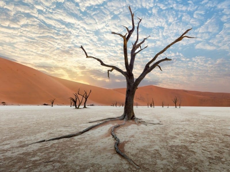 Willkommen in der Region Sossusvlei, wo Sie gigantische Dünen und tiefe Canyons erwarten. Die ganze Landschaft glüht in einem wunderschönen Rot, was der Region auch den Namen "Die rote Wüste" gegeben hat. Hier finden Sie mit bis zu 300 m Höhe die größten Dünen der Welt in der wiederum ältesten Wüste der Welt - der Namib. Die Dünen sind nicht nur wegen Ihrer Größe bemerkenswert, sondern auch wegen ihrer sternförmigen Ausdehnung, welche von erhöhten Positionen leicht zu erkennen ist.