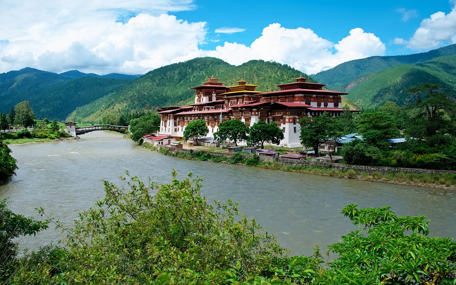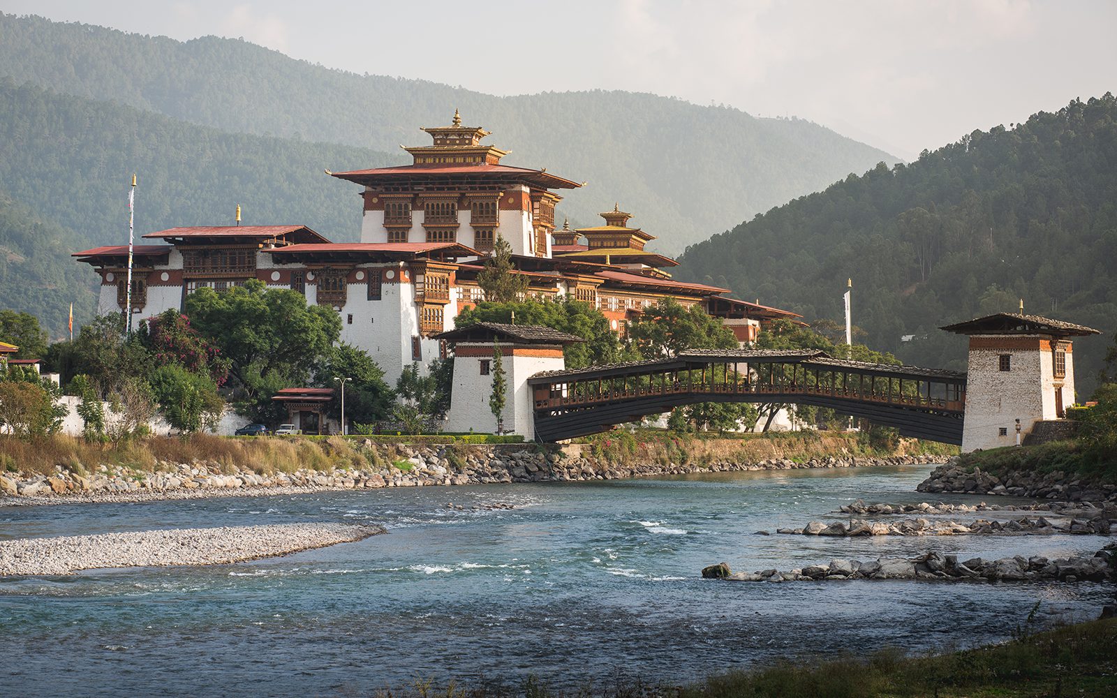 Saftige grüne Wiesen und gepflegte, rosenbewachsene Gärten umgeben die festungsähnliche Klosteranlage Tashichho Dzong, in der sich heute die Machtzentrale Bhutans befindet. Vorgängerbauten des gewaltigen Gebäudekomplexes existierten bereits im 13. Jahrhundert an den fruchtbaren Ufern des im Himalaya entsprungenen Flusses Wang Chhu. Den Anblick dieses prachtvollen Bauwerks werden Sie so schnell nicht vergessen.
