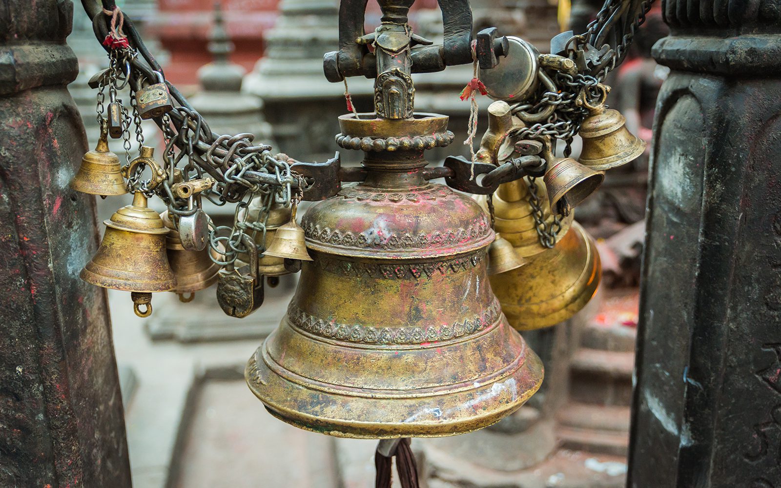 Zahllose Glöckchen säumen die endlos scheinende, 200m lange Treppe, die hinunter zum Dakshinkali-Tempel, kurz Kali-Tempel genannt, führt. Sie passieren Stände mit farbenprächtigen Blumengirlanden und weiterem buntem Beiwerk. Das rund 1.500m hoch gelegene Tempelgelände im Kathmandu-Tal, umgeben von üppigem Grün, ist eine der bedeutendsten hinduistischen Stätten Nepals.