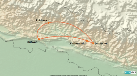 Hinweis: Das Internet unterliegt in Nepal der staatlichen Zensur. WhatsApp und Social-Media-Plattformen wie facebook, Instagram und YouTube sind in Nepal nicht erreichbar.
