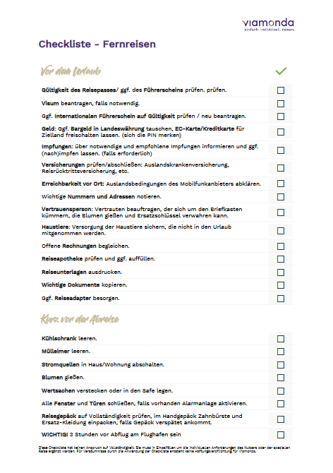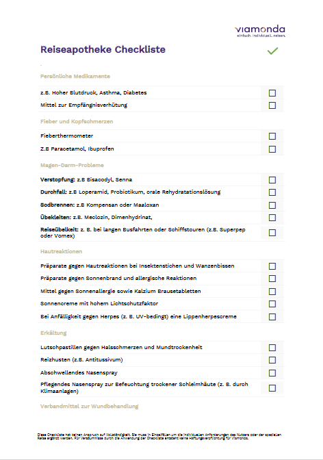 Diese Gedanken treiben häufig Sorgen und Sorgen mag niemand mit in den Urlaub nehmen. Wir unterstützen Sie bei der Vorbereitung Ihrer Reiseplanung bis zum Kofferpacken, so dass Sie sorglos Ihre reise antreten können. Nutzen Sie unsere Urlaubshelfer Checklisten und Packlisten für alles Organisatorische und die Reiseapotheke. Bestellen Sie hier kostenfrei und gehen sicher, dass Sie nichts vergessen für Ihre Traumreise.