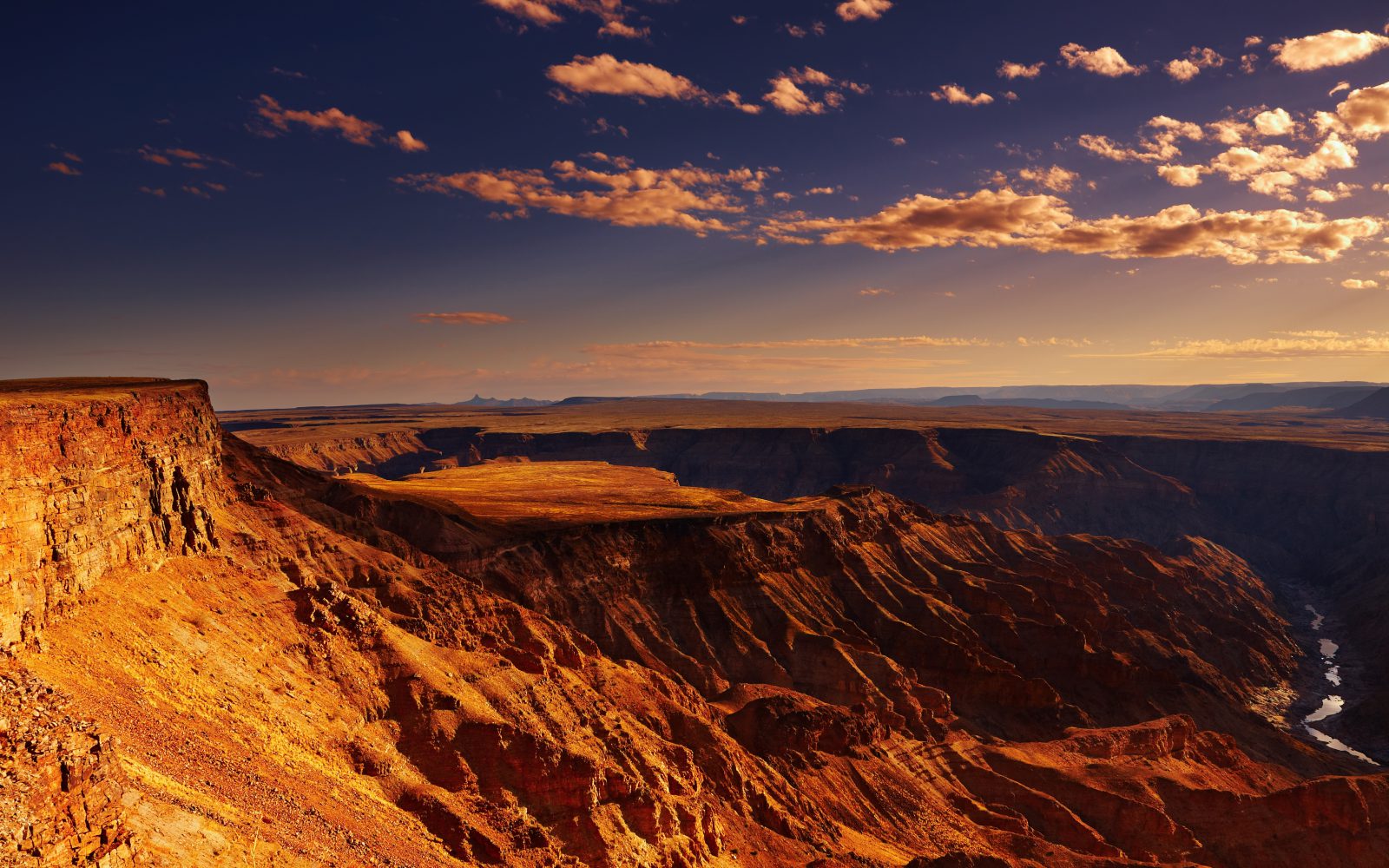 Namibia ist ein hervorragendes Reiseziel für einen authentischen Afrika-Urlaub und bietet viele Reisehighlights, die Sie sowohl als Afrika-Neuling aber auch als Kenner so schnell nicht vergessen werden. Ein absolutes Reisehighlight ist die Namib-Wüste im Westen, die sich über 1000km entlang der Küste als älteste Wüste der Erde erstreckt. Sie beherbergt auf einer Fläche von 50.000 km² das größte und spektakulärste Schutzgebiet des Landes, den Namib Naukluft Park. Und genau dort befindet sich der magische Ort „Sossusvlei“ – topographisch eine Salz-Ton-Pfanne umschlossen von riesigen Sanddünen. Gerade bei Sonnenaufgang schimmern die fast 300m hohen Dünen in tausend Farbtönen und es ereignet sich ein beeindruckendes magisches Farbspiel. Nicht unweit vom Sossusvlei befindet sich das „Dead Vlei“ bekannt für seine abgestorbenen Akazien, welche abends bei leichtem Sonnenschein wie Skelette in der trockenen Tonpfanne stehen. Ein weiterer Höhepunkt Namibias ist der Fish River Canyon im Südwesten. Es ist nicht nur der größte Canyon Afrikas, sondern mit 160 km Länge und 27 km Breite der zweitgrößte der Welt und befindet sich im Süden des Landes. Vom Fish River Canyon Viewpoint genießt man einen beeindruckenden Ausblick in die 500 m tiefe Schluchten. Mit etwas Glück sieht man sogar Leoparden oder andere Wildtiere am Fluss beim Trinken.