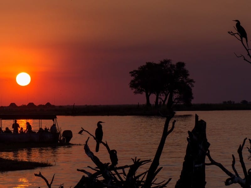 Genießen Sie den ersten Eindruck vom Chobe Nationalpark vom Fluss aus und sehen Sie die Tiere aus einer mal anderen Perspektive. Dieser Park ist für seine Elefanten- und Büffelherden bekannt, welche ans Wasser zum Trinken kommen - im Wasser spielen - oder durch den Fluss zu den Inseln laufen. Aber auch andere Tierarten und Vögel werden vom Wasser angezogen, z.B. Nilpferde, wenn diese ganz unverhofft vor oder neben dem Boot auftauchen - halten Sie Ihre Kamera für unvergessliche Fotos bereit! Mit Glück sehen Sie Krokodile, welche sich in der Sonne wärmen. Das Highlight dieser Tour ist jedoch der unvergleichbare afrikanische Sonnenuntergang. Der Himmel färbt sich in die unterschiedlichsten Rottöne - ein unvergesslicher Moment.