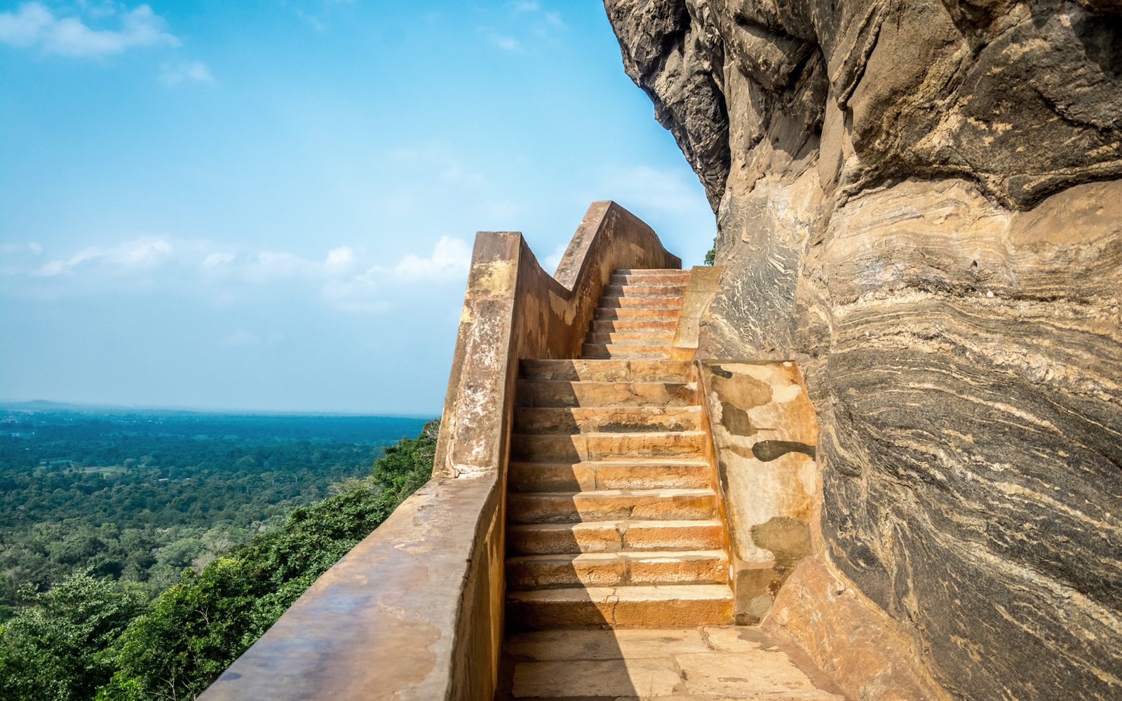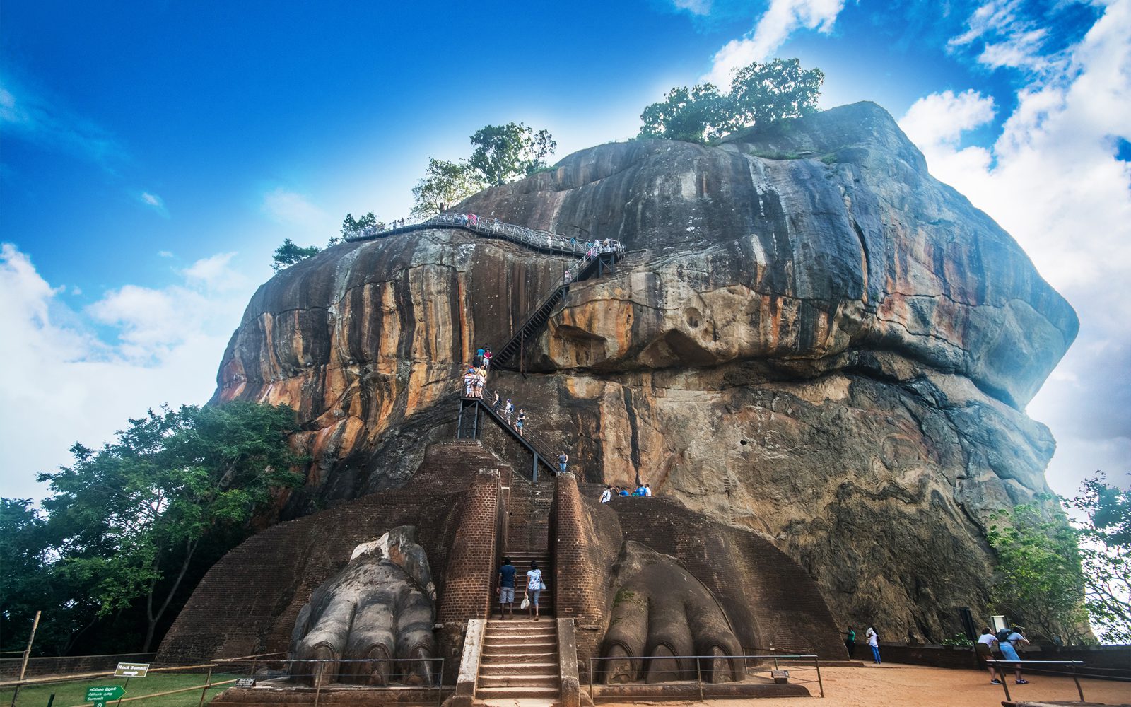 Sind Sie schwindelfrei? Dann besuchen Sie die Sigiriya Felsen im Zentrum von Sri Lanka. Eingebettet in eine wunderbare Landschaft, erhalten Sie einen atemberaubenden Rundblick von oben. Aber zuvor müssen Sie durch das imposante Löwentor auf den Monolithen hinaufsteigen, über 1860 Stufen – gigantisch! Auf halber Höhe finden Sie Fresken von überwältigender Schönheit. Früher befand sich hier das Palastgebäude, heute sind noch die Grundmauern übrig. Von einem einst riesigen Löwenkopf sind nur noch die eindrucksvollen Tatzen zu sehen.