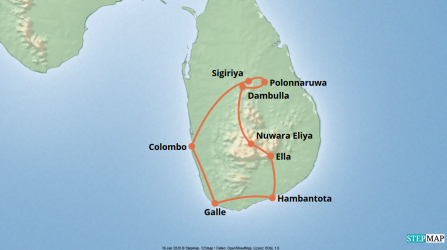 “Ayubowan” – Herzlich Willkommen in Sri Lanka! Das buddhistisch geprägte Land steigt von der Küste aus zu einem zentralen Hochplateau an. Die Landschaft ist geprägt von Regen- und Bergwäldern sowie zahllosen riesigen Tee- und Kaffeeplantagen. Tee, Kaffee sowie Kautschuk und Kokosnüsse sind die Geschenke der Natur und Hauptexportgüter.