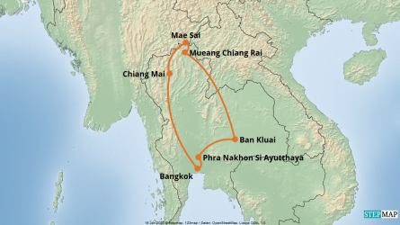 Entdecken Sie den Norden von Thailand, der voll ist von kulturellen Höhepunkten und Naturwundern. In Ayutthaya, Sukhothai, Chiang Rai und Chiang Mai befinden sich die majestätischsten und heiligsten Tempel des Landes, die eine lange, bewegte Geschichte erzählen. Sie haben sich außerdem schon immer gefragt, woher der Name "Goldenes Dreieck" stammt? Diese fast mystische Region hat eine spannende Vergangenheit.