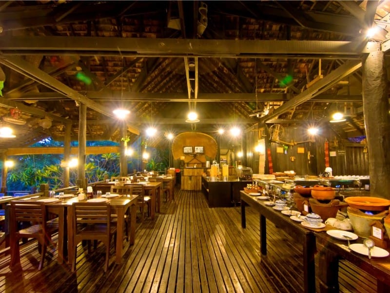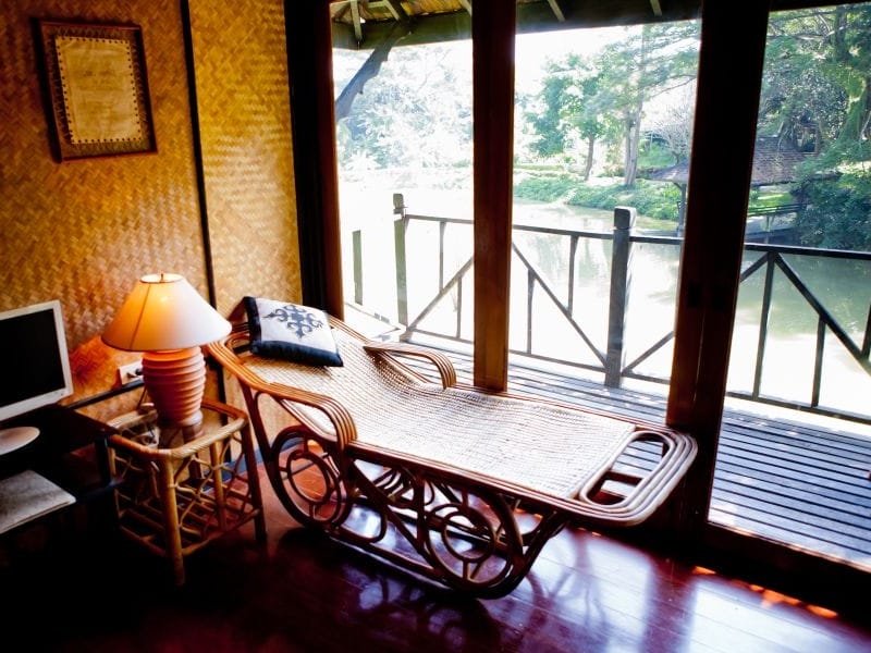 Die Lampang River Lodge bietet eine malerische Anlage in der schönsten Natur. Die Unterkünfte verteilen sich auf Bungalows, ein kleiner Pool mit toller Aussicht ist vorhanden. Für die Sportler gibt es eine Joggingstrecke und für die Schlemmer ein weitreichendes Angebot in den zwei hoteleigenen Restaurants. Die Bungalows beinhalten eine Klimaanlage, eine Terrasse, ein Badezimmer und ein Wohnzimmer. Des Weiteren liegt auf dem Gelände ein kleiner See, auf dem Sie Paddelboot fahren können. Zur Erkundung der Umgebung bietet das Hotel Leihfahrräder.