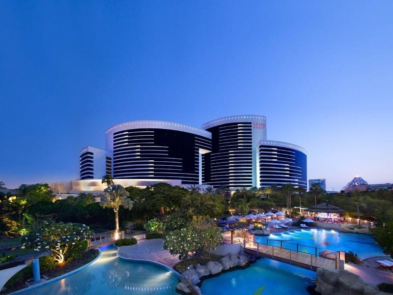 Übernachtung im Hotel Grand Hyatt Dubai - das elegante Hotel Grand Hyatt Dubai befindet sich im Stadtteil Bur Dubai, nahe der Sheikh Zayed Road. Das Stadthotel bietet 3 Außenpools und 1 Innenpool sowie 13 Restaurants und Unterhaltungsmöglichkeiten. Entspannung bietet der grosszügige Wellnessbereich, mit verschiedenen Angeboten an Spa-Anwendungen