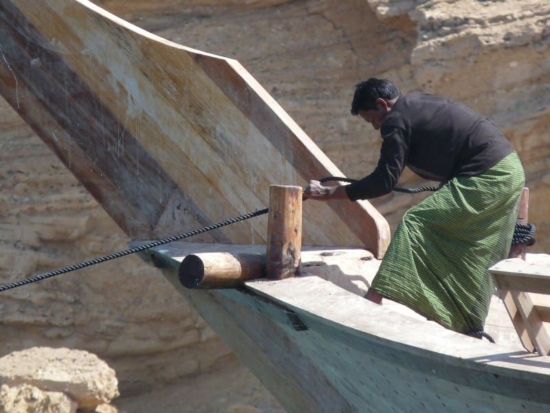 In Musandam werden Ausflüge mit einem Dhau (Holzschiff) in die Fjorde Omans angeboten.