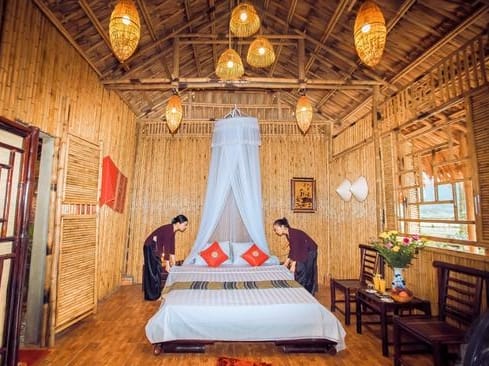 • Das Tam Coc Lamontagne Resort ist ebenfalls ruhig direkt am See gelegen und lädt zum Entspannen ein. Es verfügt über geschmackvoll eingerichtete und komfortable Zimmer mit urigen Holzmöbeln und einen erfrischenden Außenpool. Im Spa-Berich können Sie sich bei einer Massage verwöhnen lassen und in den hoteleigenen Restaurants köstliche vietnamesische Speisen schlemmen.