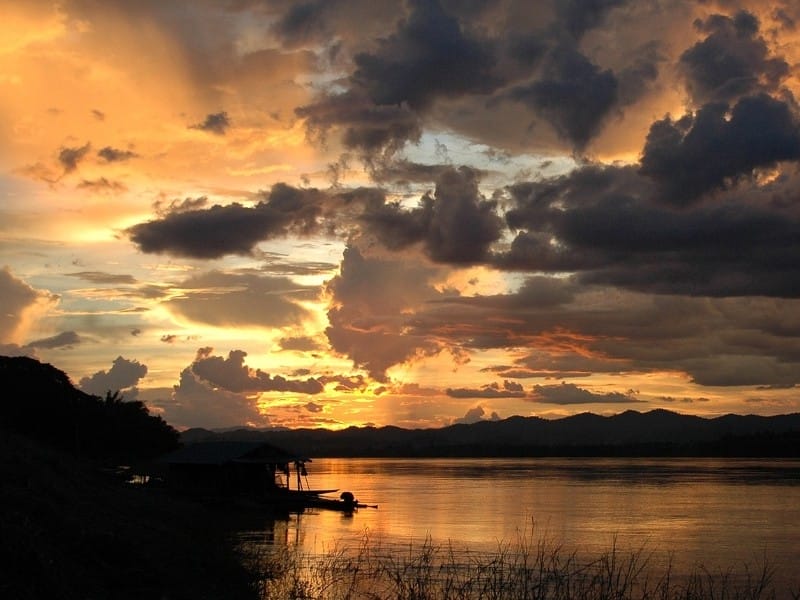 Tempel in Hoi AnBoote bei Sonnenuntergang, Hoi An